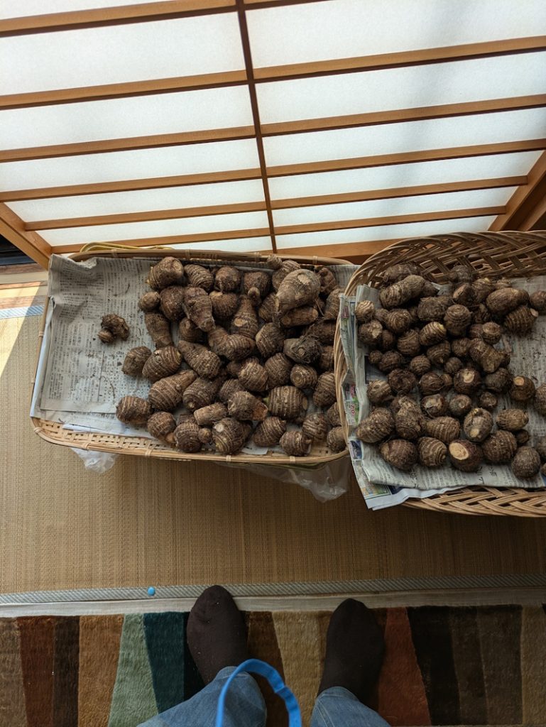 先週、ジャガイモを植えました。どうも。毎年、うまくゆきません。やめようかと思いましたが、上さんが種芋を買ったので植えました。ついでに、冬も、掘らないで、土をかぶせて保存してあった、サトイモを収穫しました。なんとなく、大きくなっているような気がしました。
